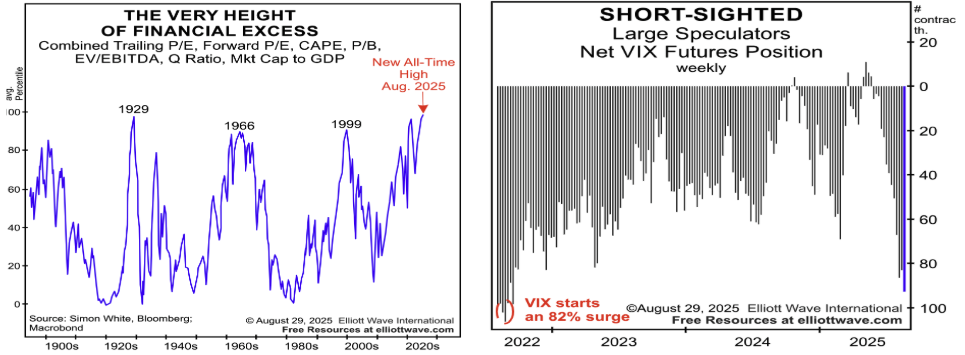 There is no escaping overvaluation if you are a multi-decade investor. The seven typical valuation measures that Craig Ferguson monitors are now at such an extreme that at nearly a 99th percentile rating the level of US equity market overvaluation is now the highest level seen since 1980 when records pretty much began. The signal is clear: long-term investors should be markedly UW stocks and largely out of US equity markets. This may be against consensus as the globe remains OW equities, but this is at a time when old sage Buffett is raising cash to $35 or more of his portfolio just as he did in the two most recent major overvaluation episodes in 1999 and 1966. Chart 2 shows that large global hedge funds are now nearly as short S&P VIX futures (or volatility) as they were in late 2021, just before the Nasdaq plunged by -38%. This won’t end well for equity markets.
