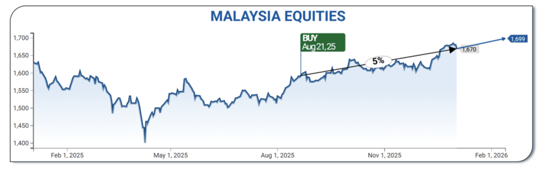 Sometimes small countries bring huge returns, reminds Konstantin Fominykh. South Korea has been his favourite since Oct 2024 and has since seen +104% gain. Now, Malaysia is grabbing his attention. The country is estimated to see real GDP growth of ~4.5% in 2026, outpacing many EM peers. Inflation is moderate and predictable, easing pressure on consumers and businesses. Unemployment remains low. The country’s equity market trades at attractive multiples with dividend yields above 4%, providing steady cash flow and downside protection. Konstantin also points out the nation’s central role in back-end semiconductor manufacturing and electronics, and global energy transition and data-centre initiatives are driving long-term demand for capital investment. Konstantin has had a buy on Malaysia equities since Aug 2025 and advises investors to look at the Malaysia ETF (EWM) for an extremely low-volatility instrument.